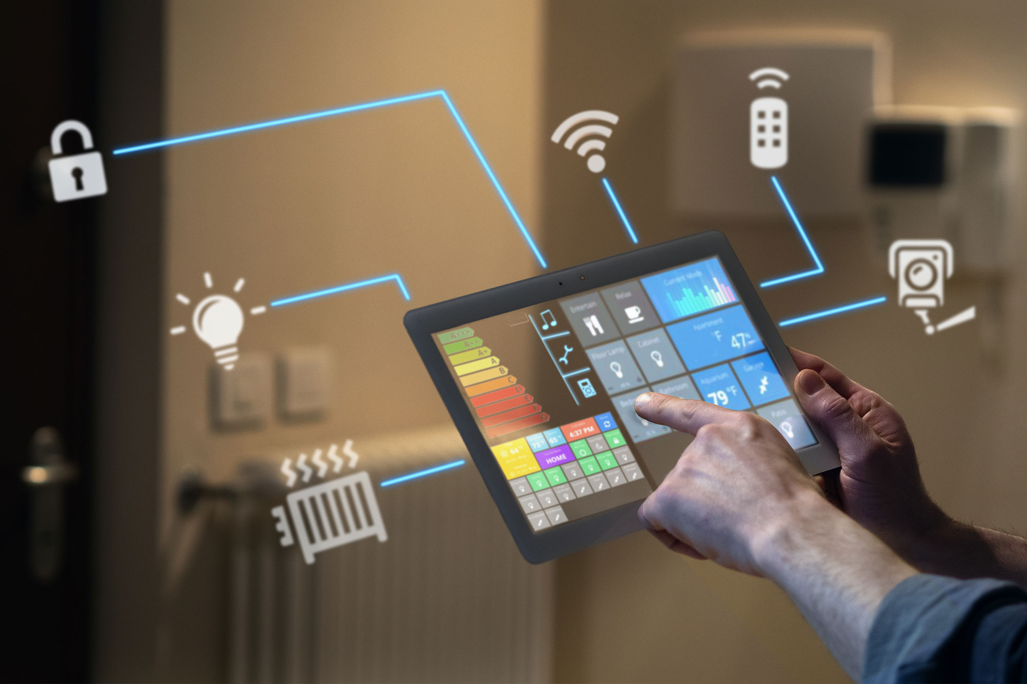 Met domotica kan u de elektrische toestellen in uw woning of bedrijfsgebouw in één klik bedienen, van uw verlichting tot uw poorten.